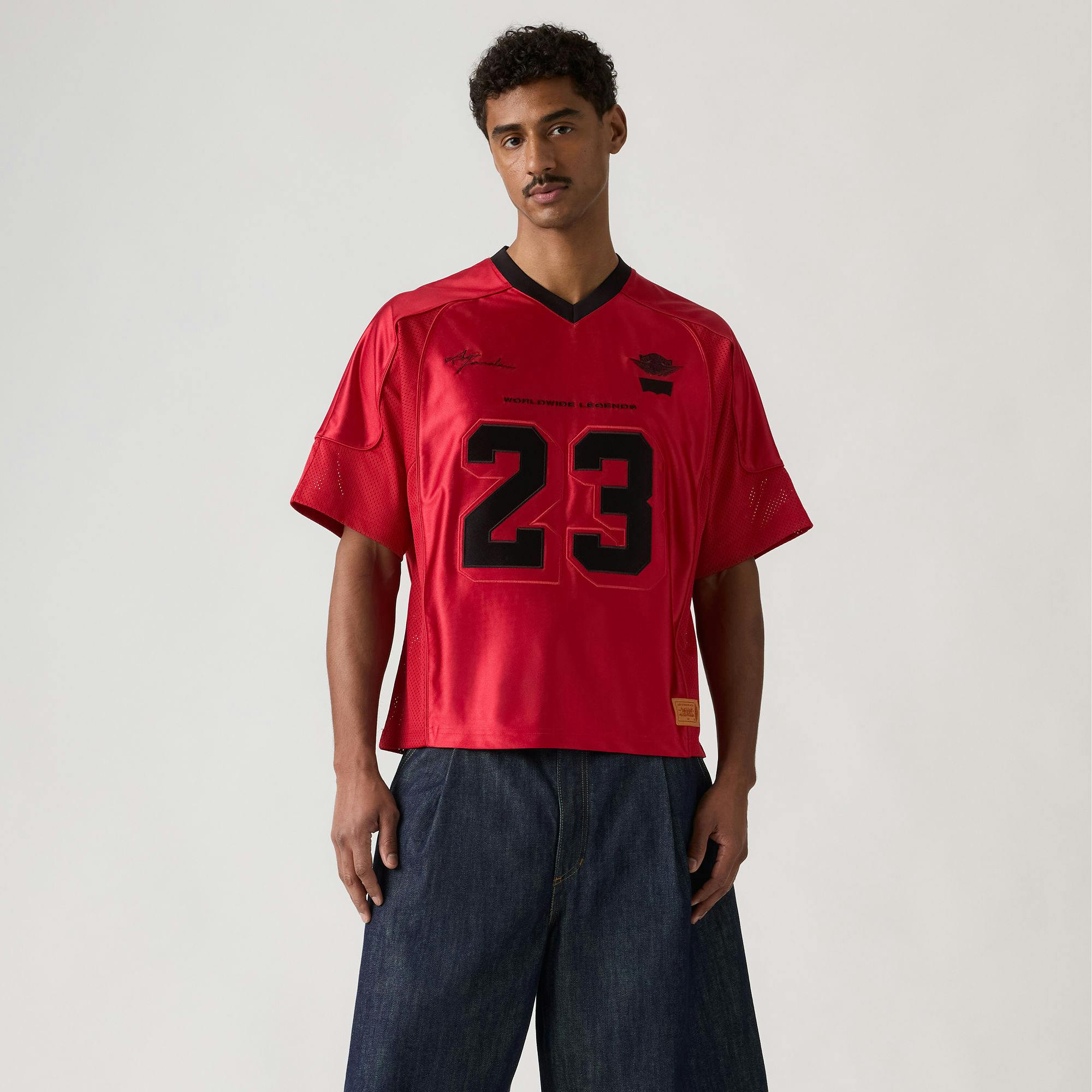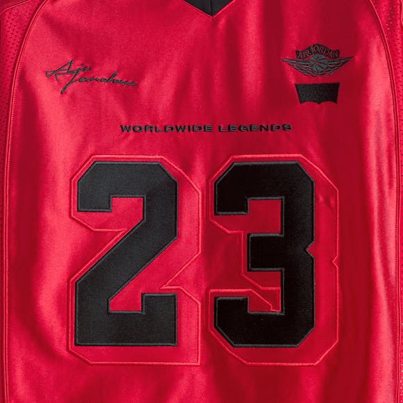 This Football Jersey features a mix of screen-printed and embroidered graphics for a fresh take on Jordan and Levi's® iconography.