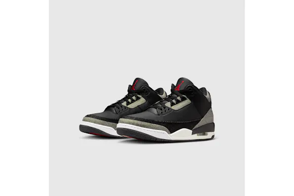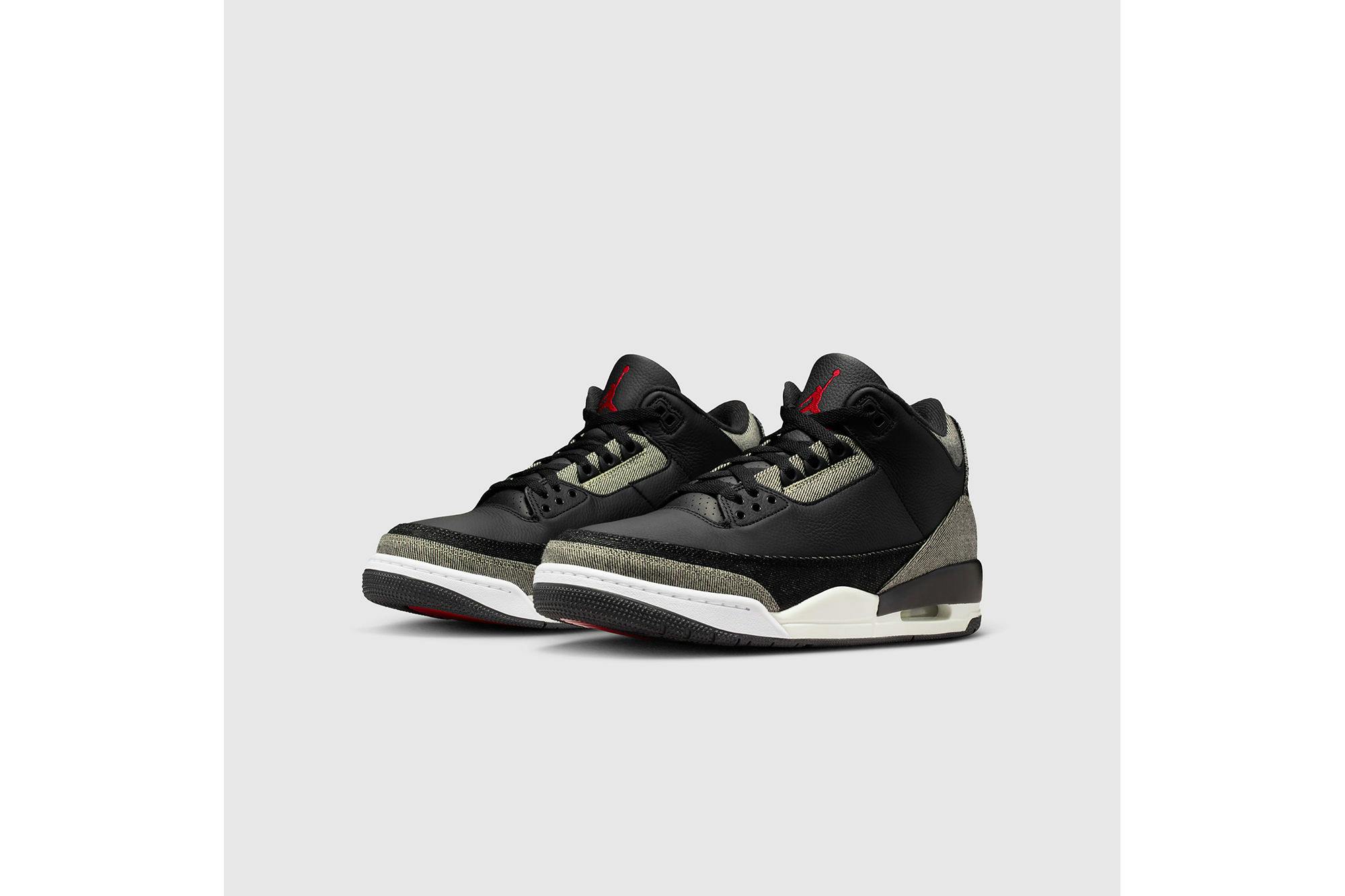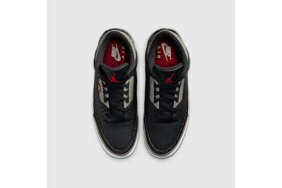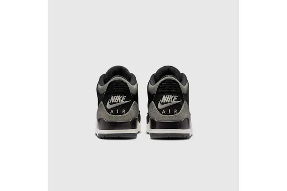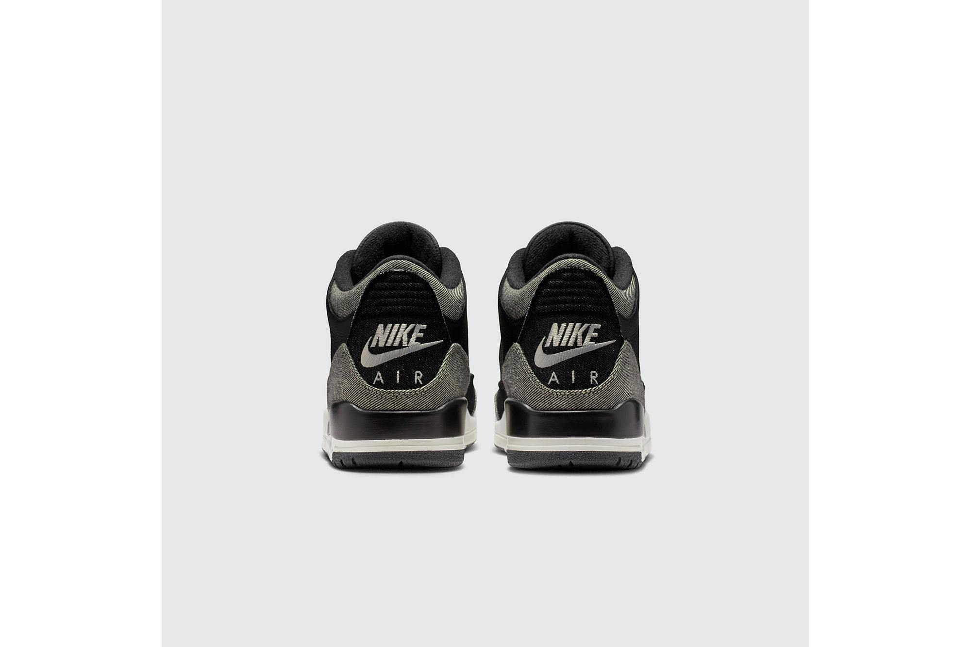 A fresh spin on the AJ3. This style features pebbled black leather, black denim panels and backside black denim that reveals lighter grey tones. We finished them with a sail midsole and an embroidered black denim heel piece that features Nike Air embroidery–a first-of-its-kind construction detail.