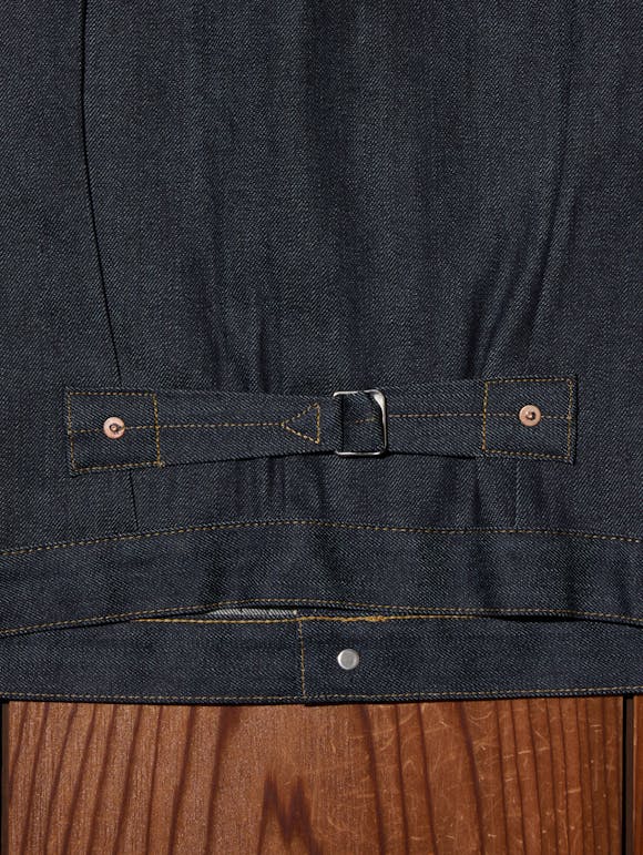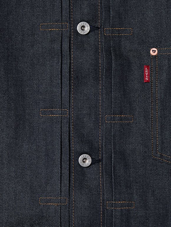 1944年は第二次世界大戦中で、アメリカ政府はすべての衣料品メーカーに対し、戦争に必要な原材料を節約するため、衣料品から一定量の金属、生地、糸を取り除くよう要請し、リーバイス®もこれに協力し簡略化されたモデルに変更しました。